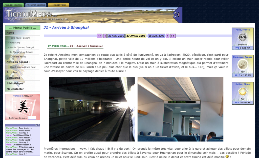 ブログをスタートしたのは2005年に中国に行った時からです。家族や友達に向けに、日常生活からバカみたいな(笑)な冒険を綴っていました。その後、フランスに戻り、日本へ住み始めてからもブログを続け、今に至っています。